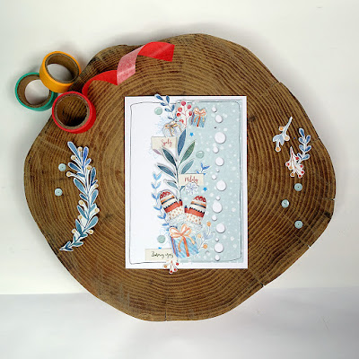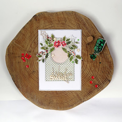 W pewnym monecie Pinezka poczuła opór materii i wymiotowała już tymi zielonymi gałązkami ostrokrzewu albo niebieskimi prezentami i wygrzebała starą świąteczną kolekcję papierów w pięknym różowym odcieniu. Więc dziś kolejna kartka z obfitością, wycinanymi pieczołowicie malutkimi elementami i okienkiem. Kto już ma dość, to Pinezka kazała poinformować, że została do pokazania jeszcze tylko jedna. Damy radę!